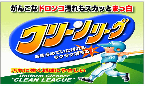 2008年2月 ユニフォーム洗濯用洗剤「クリーンリーグ」が発売されました。 がんこな泥よごれにお困りのみなさま、少ない使用量でらくらく落とし、ドラム式洗濯機でも使える、「クリーンリーグ」に、ぜひ、お手伝いさせてください。 |